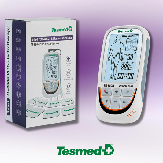 TESMED TE-880R Plus elettrostimolatore Muscolare Ricaricabile, EMS, TENS, Massaggio: 73 programmi di Cui 2 Personalizzabili - Funziona con 8 elettrodi